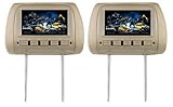 7 Inch TFT LCD Screen Headrest Monitor (1 Pair) With Remote Control (Beige) - Easy Installation