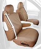 Covercraft Custom-Fit Front Bucket SeatSaver Seat Covers - Polycotton Fabric, TanCoverCraft's SeatSavers are custom patterned to fit your Pickups and SUVs. SeatSaver seat covers are your first line of defense against the everyday wear and tear from dirty dogs, messy kids, greasy tools, and fade from the sun. SeatSavers are made of heavy-duty polycotton fabric which allows you and your seats to breathe, eliminating that tacky, sticky feeling that vinyl or neoprene type seat covers can cause while driving. Their quality construction features overlapped and double-stitched seams for durability, precision patterns for a custom tailored fit, and the material is treated with a water repellency finish that blocks liquid from ever reaching your seats. It takes only seconds to install and remove your SeatSavers. Maintenance is easy. If they get dirty, just take them off, toss them in your home washer and dryer and reinstall.